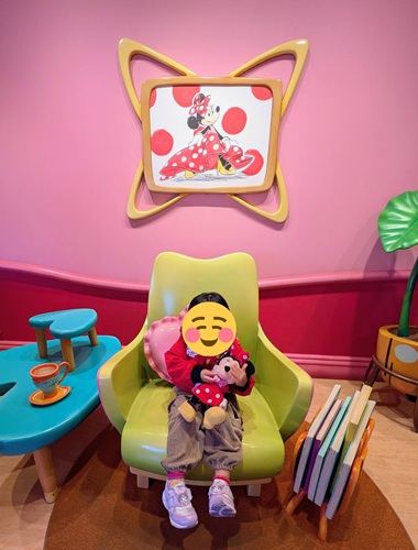 - 11:45ころ、「ミニーのスタイルスタジオ」ミニーちゃんのグリーティングへ(45分待ち)
